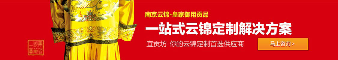 南京宜貢坊云錦文化科技有限公司成立于二OO一年,場地面積10000㎡,致力于做中國知名的云錦,宜貢坊云錦文化科技有限公司座落于江寧開發(fā)區(qū)。做為江蘇云錦文化科技品牌之一,南京宜貢坊擁有雄厚的技術(shù)力量和實力,現(xiàn)有大型傳統(tǒng)花木樓織機(jī)幾十臺,織造師、研究設(shè)計人員數(shù)百人。公司擁有直屬北京、深圳、上海辦事處和近千家緊密經(jīng)銷商、合作商;產(chǎn)品在南京中央商場、新百、上海八百伴、上海友誼商場,泰州金鷹等全國多家大型商場均有專柜。